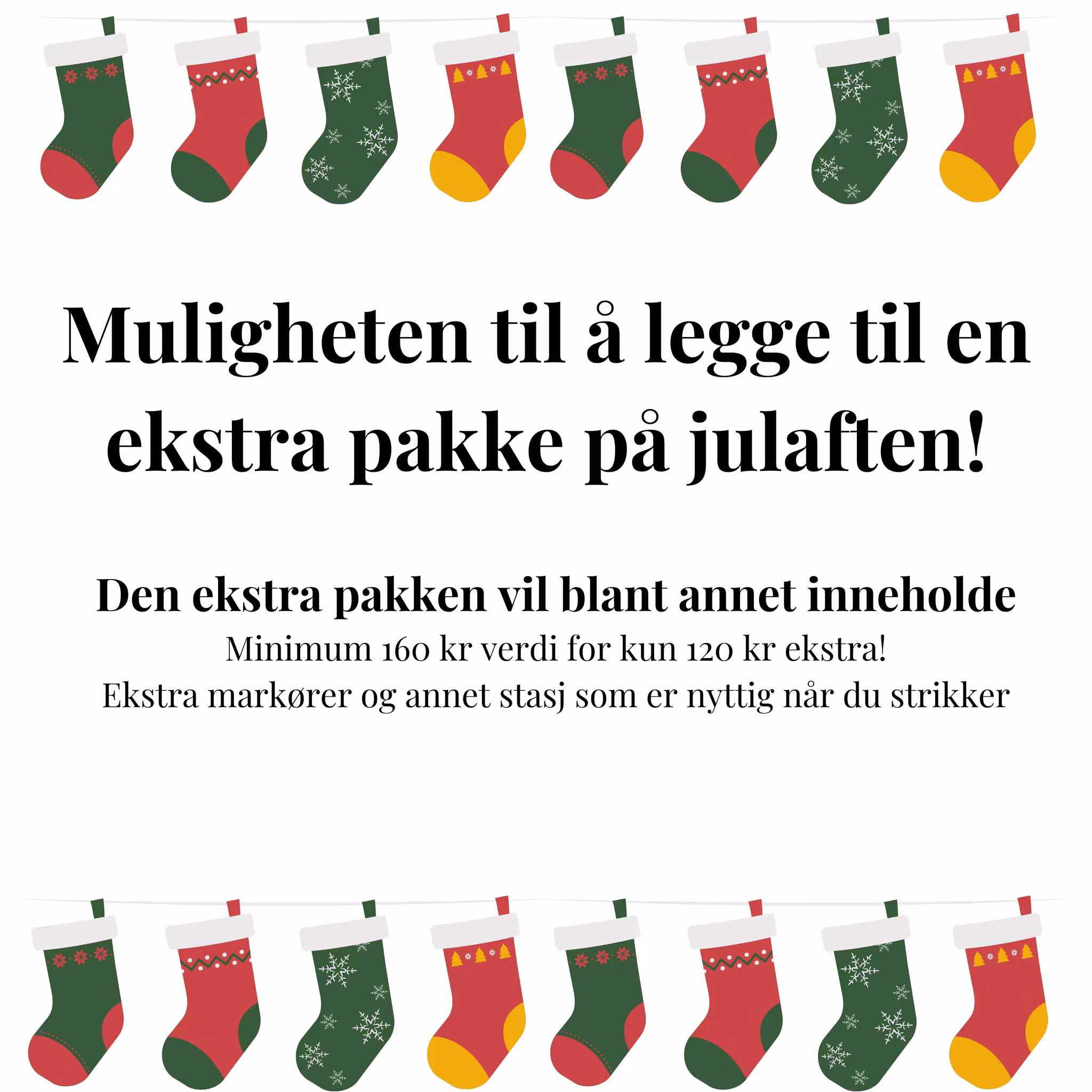 Dette er alternativet for deg som vil ha en ekstra luke/pakke å åpne på julaften! Prisen er 120 kroner. Denne pakken vil inneholde: