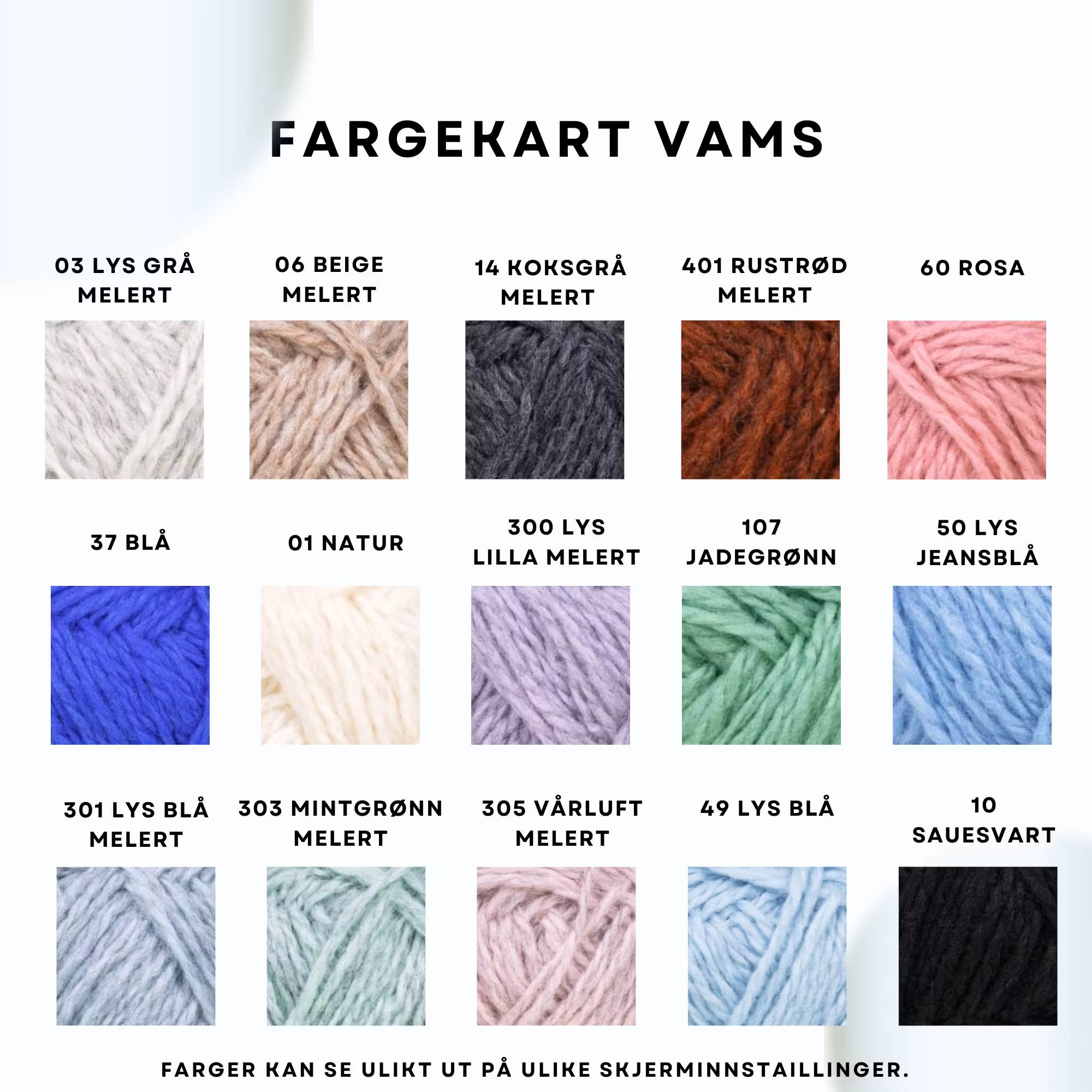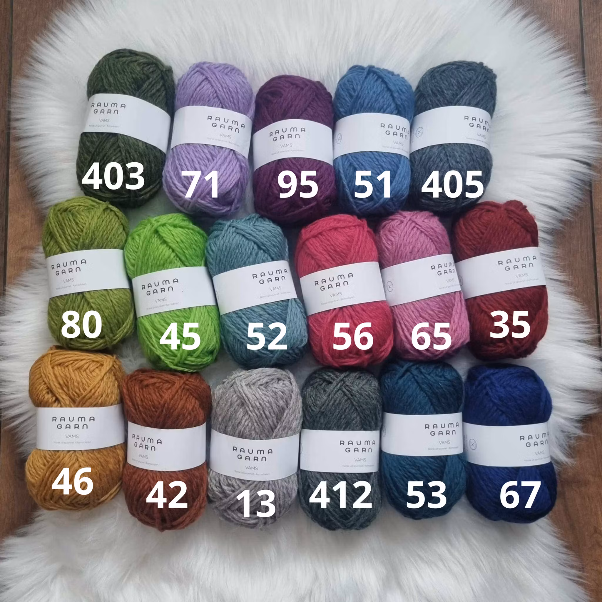 2 (3) 3 (3) 4 (4) nøster Rauma Vams (i strl 37/38 og 43/44 er det helt i grenseland med 2/3 nøster og følger derfor med ett nøste ekstra), du kan klare deg med ett nøste mindre om du er heldig (bestill i så fall en størrelse mindre om du ønsker å ta sjansen).